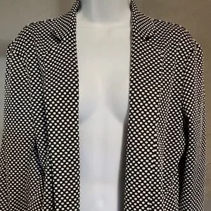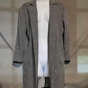 Stylish jacket with black and white polka dots. Perfect for versatile wear.