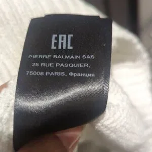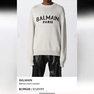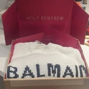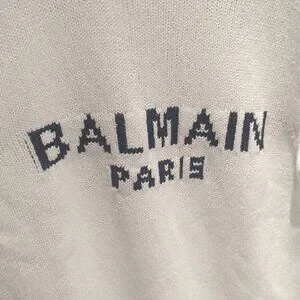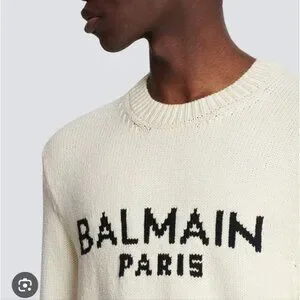 This is a gorgeous white Balmain sweater with 3 silver buttons at the shoulder, with black lettering at the chest. All hardware in prestine condition. Made in Italy. Worn once for a few hours for a fashion show. Bought for $1200.