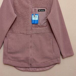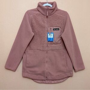 New with tags Columbia Lodge Sherpa Full Zip Fleece Jacket. Unbelievably soft fleece in a toasty warm layer you'll never want to take off. This plush jacket is perfect for a chilly day from lodge to trail to campfire. ⭐️Color: Eraser Pink ⭐️Zippered chest pocket secures small items ⭐️Hand pockets keep hands warm ⭐️Shirttail hem lets you move freely while adding coverage ⭐️Relaxed Fit: Most generous fit for a full spectrum of movement ⭐️Center Back Length: 32.0 in / 81.3 cm ⭐️Uses: Everyday ⭐️Shell: 100.0% Polyester Sherpa Pile face Microfleece back /Shell: Sherpa Pile 100% polyester ⭐️Imported ⭐️Approximate measurements: -Pit to pit 21 1/2” -Arm length 25”.
