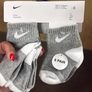 Nike Infant Gray and White Ankle Socks - 6 Pair