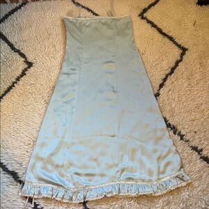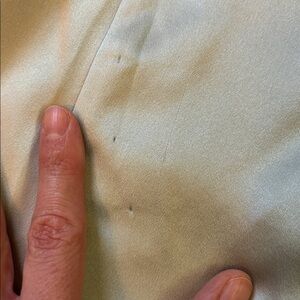 Worn for a few hours to a wedding. There are some very hard-to-photograph marks on front - have not tried to remove or dry clean as I didn't know they existed till this moment - and a section on back w pin pricks???? and a run thing. Doing my best with max photos, and offers obviously fine
