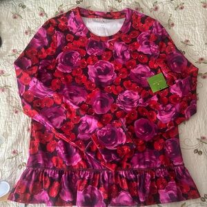 kate spade Floral Long Sleeve Top - Red and Pink NWT