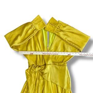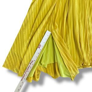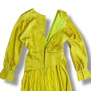 Chartreuse Pleated Wrap Dress Long Sleeve Asym Hem Midi Yellow Women