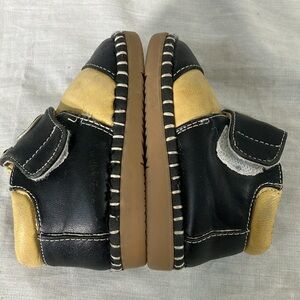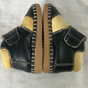 Baby size 14 leather cozy fuzzy lined Velcro tie shoes with rubber sole