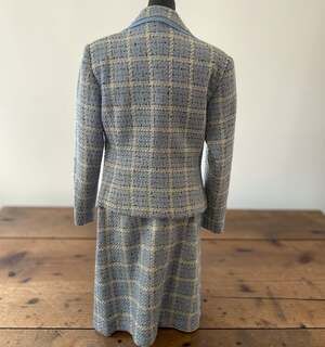 Requirements Vintage Blue and Cream Plaid Tweed Two-Piece Skirt Suit Set Size 8