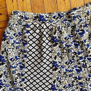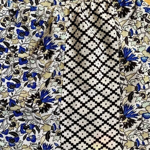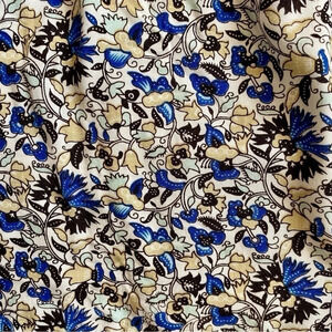 Color: Blue, cream, white, brown floral print