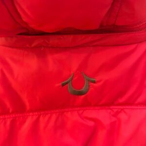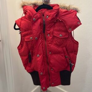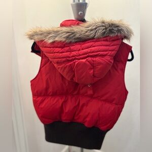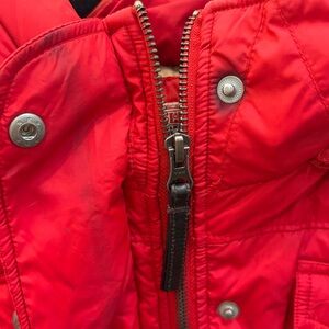 Keep your child warm and stylish with this vibrant red puffer vest. Perfect for chilly days.