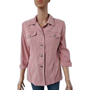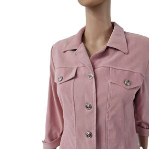 The RJ & Co Jacket is a stylish and versatile addition to any woman's wardrobe. Made of durable polyester material, this solid pink jacket features long sleeves and a regular fit, making it perfect for travel, casual outings, or even business meetings. It is machine washable for easy care and is available in size 8, ideal for a comfortable and fashionable look. The basic jacket style from R.J. & CO is perfect for the fall season, adding a pop of color to any outfit.