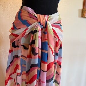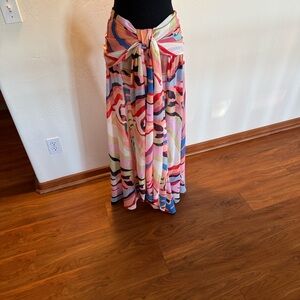 Vibrant halter and maxi skirt set. Skirt is very airy and is semi sheer. Side slit. Back zip. Halter is lined and has zero show through. Elastic back is pull over for a very easy fit. Colors are fabulous. Never wore.
