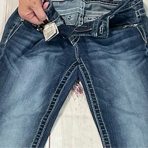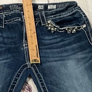 Miss Me, 28x34, Embellished Jeans, one very small rhinestone missing on front left pocket -see picture.