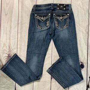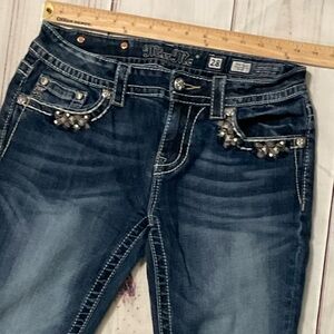 Women’s Miss Me Mid-Rise Boot Jean Size 28x34 Embellished Pockets