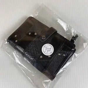 Fossil Black Genuine Leather Patchwork Studded Bifold Wallet