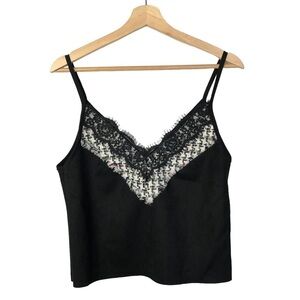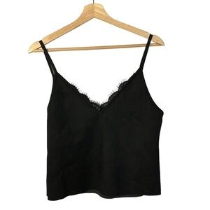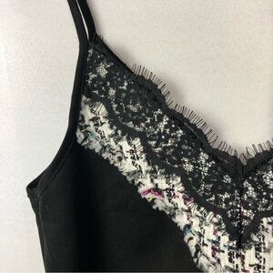 Zara Black Faux Suede Wool Tweed Embroidered Tank Top M