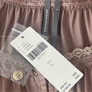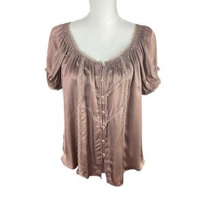 Anthropologie Amber Short-Sleeve Silky Lace Top Blouse Women’s Sz L