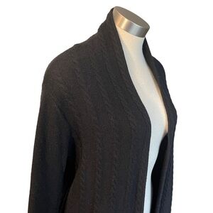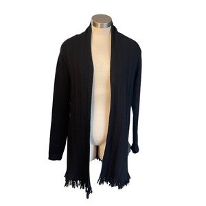 Raffi Cashmere Cardigan Open Front Cable Knit Fringe Black Sz. S