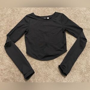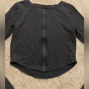 Women’s Free People FP Movement Ribbed Back Zip Long Sleeve Crop Top Black Sz S