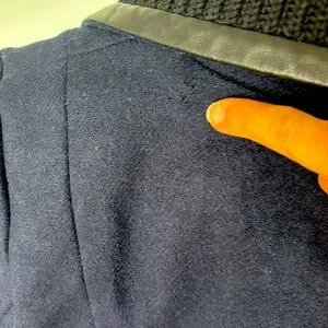 CONDITION: Good used condition. *Please note: a few small areas where the knit shows signs of wear or of having been rubbed, as highlighted in photos. Hard to detect in the dark knit.