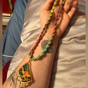 Preserved Butterfly Wing Pendant on Croqueted Rainbow Cord