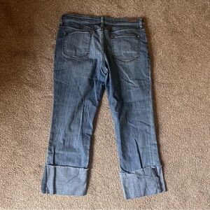 Chic cropped jeans with a stylish cuffed hem. Perfect for casual outings. In great shape. The only flaw is the size tag peeing.
