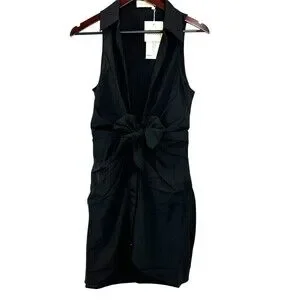 New Choosy St Crosby Plunging Shirt Dress 12 Black Sophie Turner Kim Kardashian
