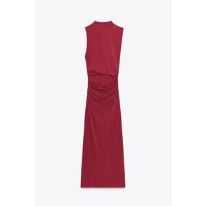 Zara Ruched Sleeveless Midi Dress Size M Medium Pink