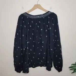 NWT Old Navy | Black Floral Embroidered Boho Long Sleeve Top Size XL Tall