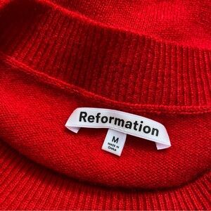 Reformation’s Dana cashmere long sleeve crewneck sweater in red, size medium (pit to pit: 19.5 in, length: 20 in)