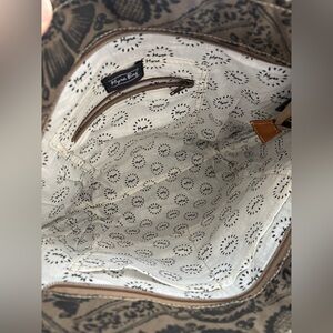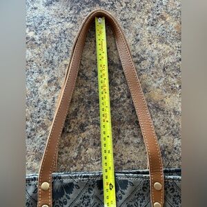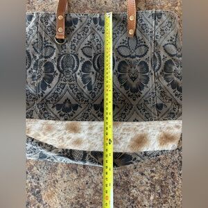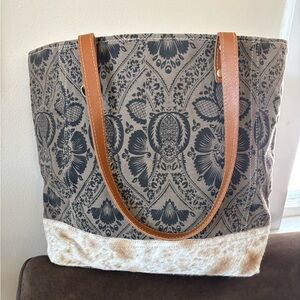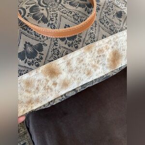 Super cute tote bag in excellent condition. High quality recycled canvas and genuine hairon accents give this handbag a western vibe. Roomy design is perfect for running errands, weekend getaways or for everyday wear.