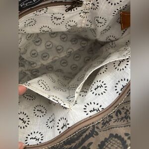 Namaste Tote Bag By Myra Bag, Western, Cotton Canvas/Cowhide, Carry On, Recycled