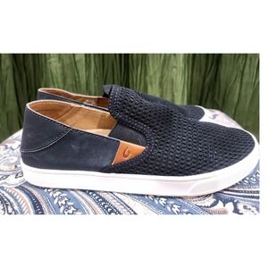Olukai Pehuea black mesh slip on sneakers offer a lightweight and breathable design perfect for everyday wear. These versatile shoes feature a drop-in heel for easy on-and-off functionality and a dual-density anatomical footbed for all-day comfort. These sneakers are preloved and in good condition. Refer to photos .