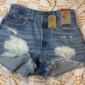 Levi’s 501 High Rise Shorts in size W28 — brand new with tags.