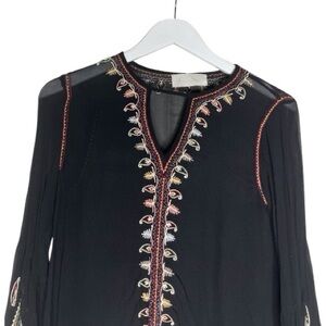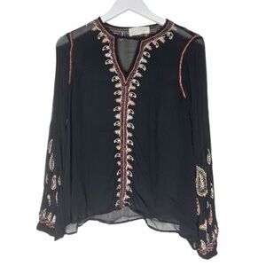 LOVE SAM ANTHROPOLOGIE Semi Sheer Paisley Boho V Cut Peasant Blouse Black Small