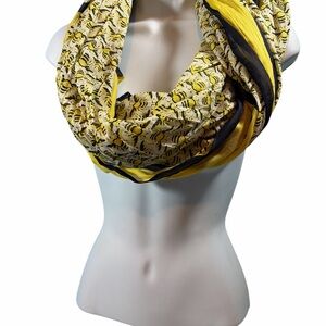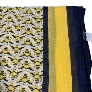 Crown Ivy Woman Bee Print Scarf Navy Blue Yellow White Semi Sheer 72" x 29"