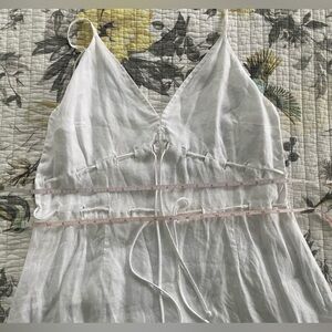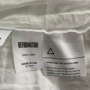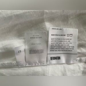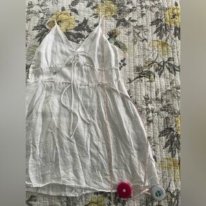 Reformation linen mini dress in white with bows