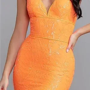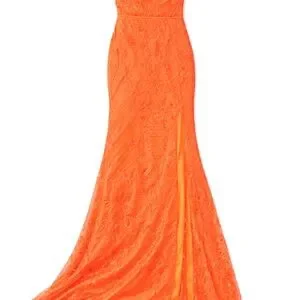 Prom Neon Orange Lace Mermaid Gown | Lace-Up Back - Size 2