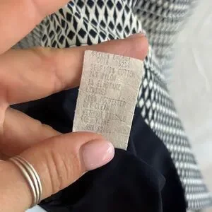 This elegant blue and white dress features a sophisticated pattern, perfect for any occasion. Its sleek design offers a flattering fit, making it a versatile addition to your wardrobe.