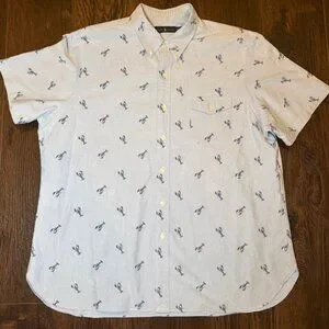 โญ Ralph Lauren XXL Button Down Shirt Blue Lobster Print Short Sleeve Cotton