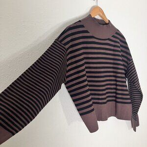 NWT NATURAL LIFE Brown and Black Striped Turtleneck Sweater Size Medium