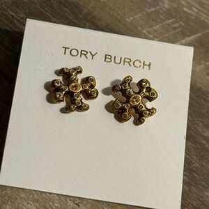 NWT Tory Burch Gold rhinestone Stud Earrings