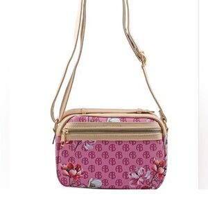 Alexis Bendel Floral Crossbody Bag in Monogrammed Pattern Pink. NWT