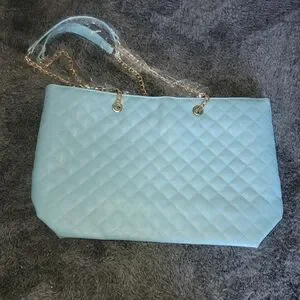 Badgley Mischka Blue Quilted Tote Bag NWT