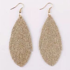 The gold glitter leather fringe feather style earrings are light-weight and flexible with nickel-free silver-toned ear wire.