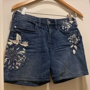 NWOT Anthropologie Pilcro Slim Boyfriend Floral Embroidered Women's Denim Shorts