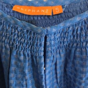 Lined body with Unlined sleeves. Belt has tassels on the ends. Beautiful blue color. The design on the dress is a micro square pattern. Very flattering and great for most occasions.