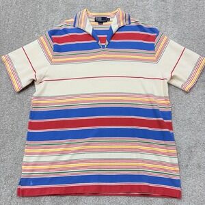 VTG Polo Ralph Lauren Men's XL Short Sleeve Striped Blue Pony Logo Shirt 80s