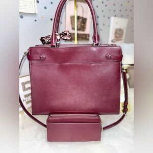 4FER NWOT Burgundy Satchel Bag with Matching Wallet