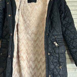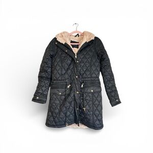 Bebe quilted black anorak puffer jacket with fur hood