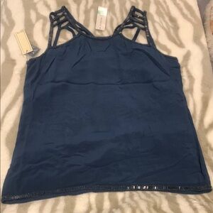 Ecru Blue Cut Out Tank Top with Decorative Straps