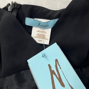BNWT Marciano black silk cami with gold tone chain straps. Straps are adjustable at the back by a section that is fabric. Pleating under the bodice. Silk satin with chiffon overlay. Back zip closure. Very elegant, chic, going out, date night, cocktails. Size M.
