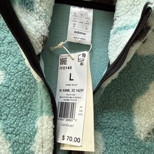 adidas Essentials 3‑Stripes Animal Print High Pile Cropped 1/4 Zip Top L